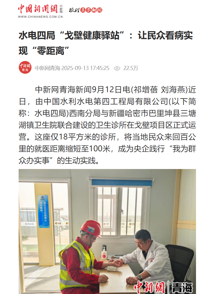 中國新聞網(wǎng):水電四局“戈壁健康驛站”,讓民眾看病實現(xiàn)“零距離” |