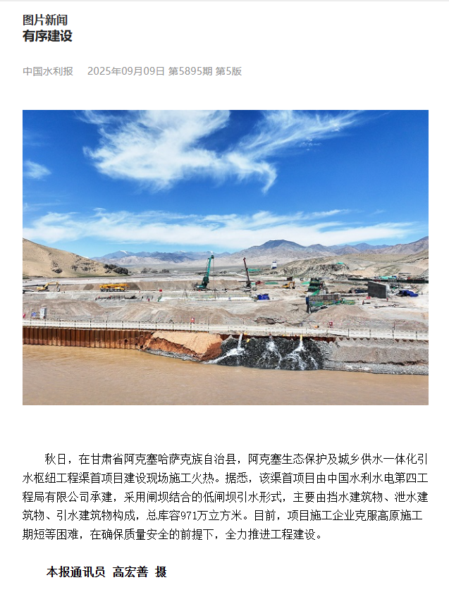 8月23日,中國新聞網以題為《蔡甸清水入江工程惠及30萬居民》報道公司承建蔡甸清水入江項目情況。 碧波蕩漾的湖面倒映綠意,岸邊棧道上居民悠然漫步——曾經的黑臭水體,如今蝶變為蔡甸區亮眼的生態樂園。作為長江大保護戰略的生動實踐,蔡甸清水入江工程以系統治理與科技賦能,守護一泓碧水,讓30萬居民共享生態改善的甘甜。 “以前夏天蓮花湖總有異味,現在湖水清、岸邊綠,早晚帶孫子來散步,空氣里都是草木香!”家住蔡甸城關的王女士看著湖邊嬉戲的孩童,笑意盈盈。 2020年,蔡甸清水入江項目正式啟動,長江環保集團與中國水電四局攜手開啟投建運一體化治理征程。 “三年攻堅不僅消除了8處劣V類水體及27處漬水點,更建立了‘建管養’一體化長效機制?!敝袊娝木植痰轫椖靠偣罾诮榻B,工程實現了雨污全分流、全收集、全處理,蓮花湖水體透明度從不足30厘米提升至1.5米以上,溶解氧含量提升超3倍。 展望未來,項目將持續優化智能監控網絡,同時啟動“清水入江+文旅融合”計劃,開展濱水健步、科普宣傳等活動,讓生態紅利切實轉化為發展動能,使蔡甸居民既享生態之美,更獲生態之利。 9月9日,中國水利報以題為《有序建設》報道公司承建阿克塞生態保護及城鄉供水一體化引水樞紐工程。 秋日,在甘肅省阿克塞哈薩克族自治縣,阿克塞生態保護及城鄉供水一體化引水樞紐工程渠首項目建設現場施工火熱。據悉,該渠首項目由中國水利水電第四工程局有限公司承建,采用閘壩結合的低閘壩引水形式,主要由擋水建筑物、泄水建筑物、引水建筑物構成,總庫容971萬立方米。目前,項目施工企業克服高原施工期短等困難,在確保質量安全的前提下,全力推進工程建設。 網址鏈接:https://m.chinanews.com/wap/detail/chs/zw/391441.shtml 網址鏈接:http://share.591adb.com/sharearticle/article/article_id/6235694/app_key/3f324ca5ce32dd3e0dd1200e4e6c18b5 |